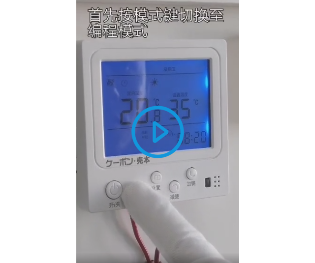按住設置鍵4秒鐘以上,界面進入編程模式設置,依次設置小時、分鐘、設置溫度。通過按一次設置鍵轉換。