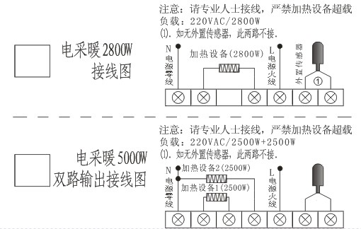 注意事項:接線前,請確認產品型號及類型,與下列接線圖對號接線,務必請專業人士接線,接線完畢后請檢查接線是否正確,再通電測試。